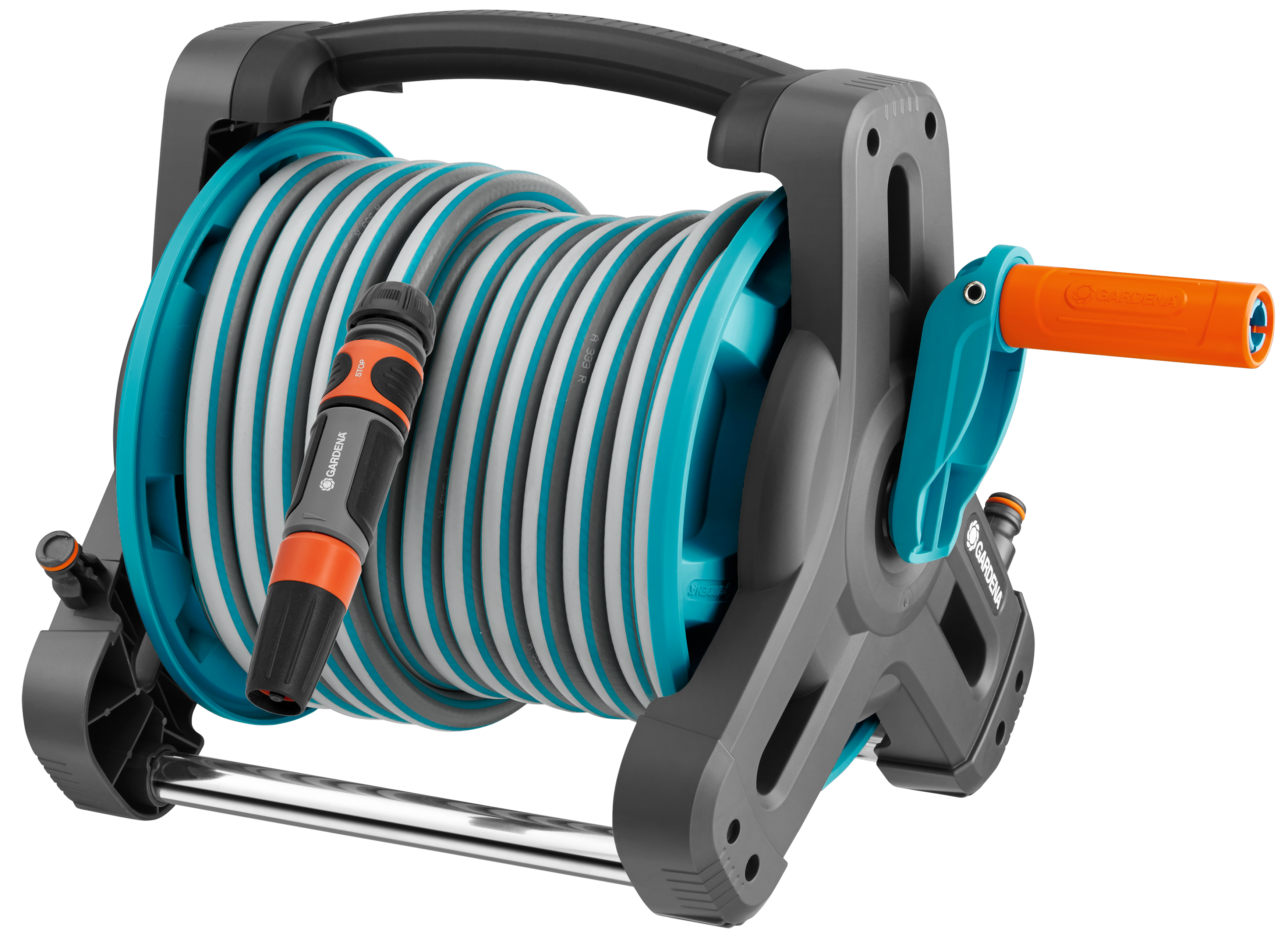 De Classic Slanghouder 10 Set van GARDENA biedt u alles wat u nodig hebt om gemakkelijk water te geven. Met de vrijlopende handzwengel kunt u de tuinslang moeiteloos oprollen en netjes opbergen, zonder ergerlijke knikken of knopen. De hele set is gemaakt van hoogwaardige materialen en is daardoor bijzonder slijtvast, duurzaam en bestand tegen dagelijks gebruik. De haspel is onderhoudsvrij en de slang is altijd klaar voor gebruik. Deze handige, complete set bestaat uit een kwaliteitsslang van 10 meter, alle noodzakelijke onderdelen van het Original GARDENA System en een praktisch reinigingssproeier. Dankzij het compacte design en de geïntegreerde ergonomische handgreep kan de haspel gemakkelijk en comfortabel worden gedragen. De driehoekige constructie en het lage zwaartepunt zorgen ervoor dat de haspel bijzonder stabiel is. Nadat u de waterkraan hebt dichtgedraaid, duwt u het uiteinde van de tuinslang gewoon op de geïntegreerde druppelstop. Hierdoor lekt er geen water en de slanghaspel kan worden vervoerd en droog opgeborgen. GARDENA onderstreept de hoogwaardige productkwaliteit van dit in Duitsland vervaardigde product met een garantie van vijf jaar. Bewatering die altijd gebruiksklaar is. Licht van gewicht, compact en gemakkelijk te dragen.