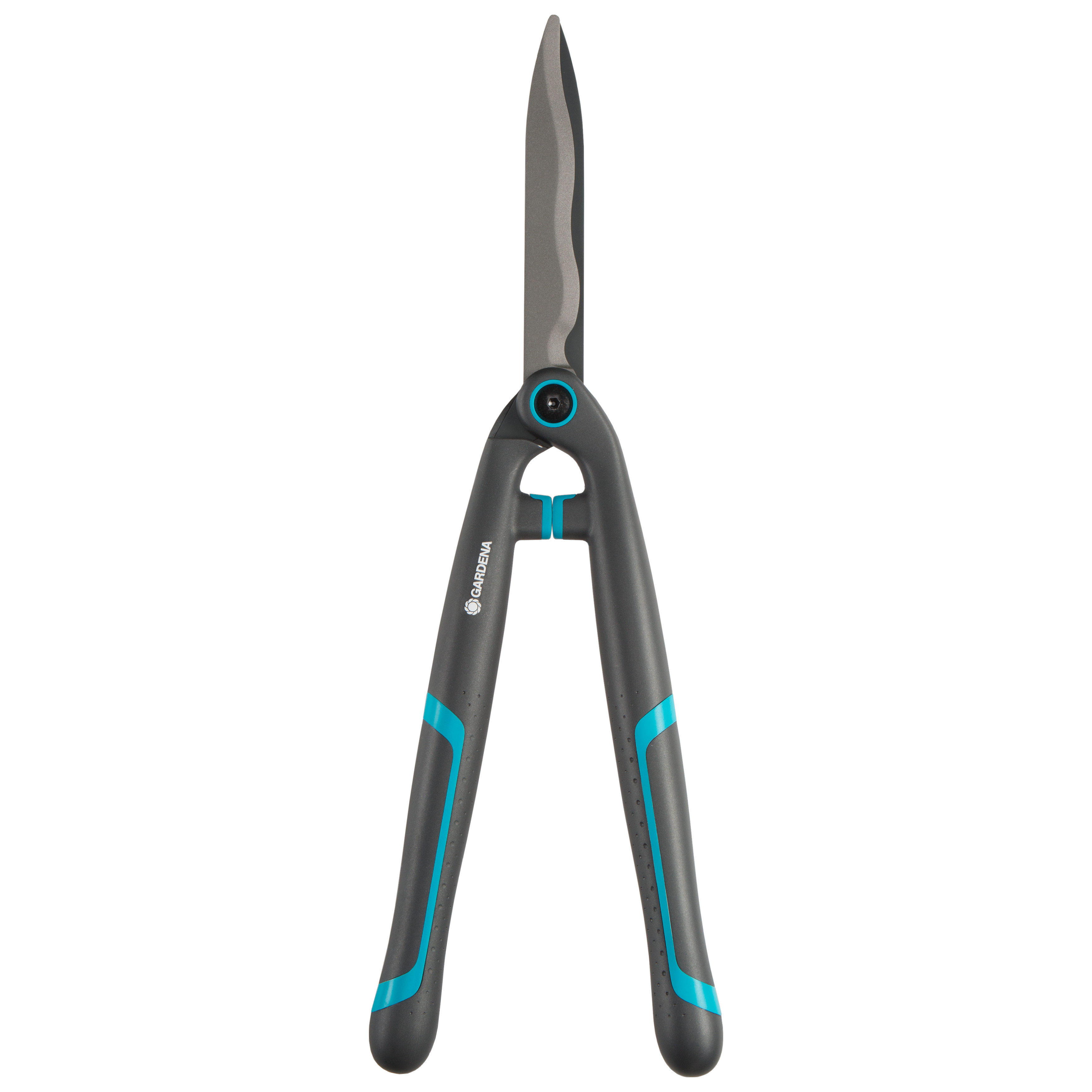 GARDENA’s Heggenschaar EasyCut is een zeer goed uitgebalanceerde heggenschaar. Een echte, degelijke alleskunner die geschikt is voor uiteenlopende snoeiwerkzaamheden van heggen, struiken en heesters. Dankzij het gebruik van lichtgewicht materialen heeft deze heggenschaar een laag gewicht waardoor u langer kunt doorwerken zonder vermoeid te raken. De ergonomisch ontworpen ErgoTec handgrepen zijn gemaakt van robuust, met glasvezel versterkte kunststof. Tijdens het snoeien worden schokken door de zachte aanslagbuffers geabsorbeerd waardoor uw polsen worden beschermd. De stalen messen zijn bijzonder duurzaam en onderscheiden zich door de gegolfde messen. Dankzij deze speciale vorm is de heggenschaar bijzonder efficiënt, vooral wanneer er grotere oppervlaktes moeten worden geknipt. Dunne takken en twijgjes glijden niet weg tijdens het knippen dankzij de gegolfde messen die het materiaal goed vasthouden. De antikleefcoating op de messen vermindert wrijving en zorgt voor gladde, schone snede, wat het werkcomfort en de efficiëntie verhoogt. Als u dikkere takken wilt knippen, is de geïntegreerde takkensnijder erg handig. Al deze kenmerken maken deze EasyCut tot een echt kwaliteitsproduct en GARDENA biedt 25 jaar garantie ter ondersteuning van deze hoge kwaliteit. Express your vision with precision. Gemakkelijk te hanteren, effectief en duurzaam tuingereedschap voor creatieve tuiniers.