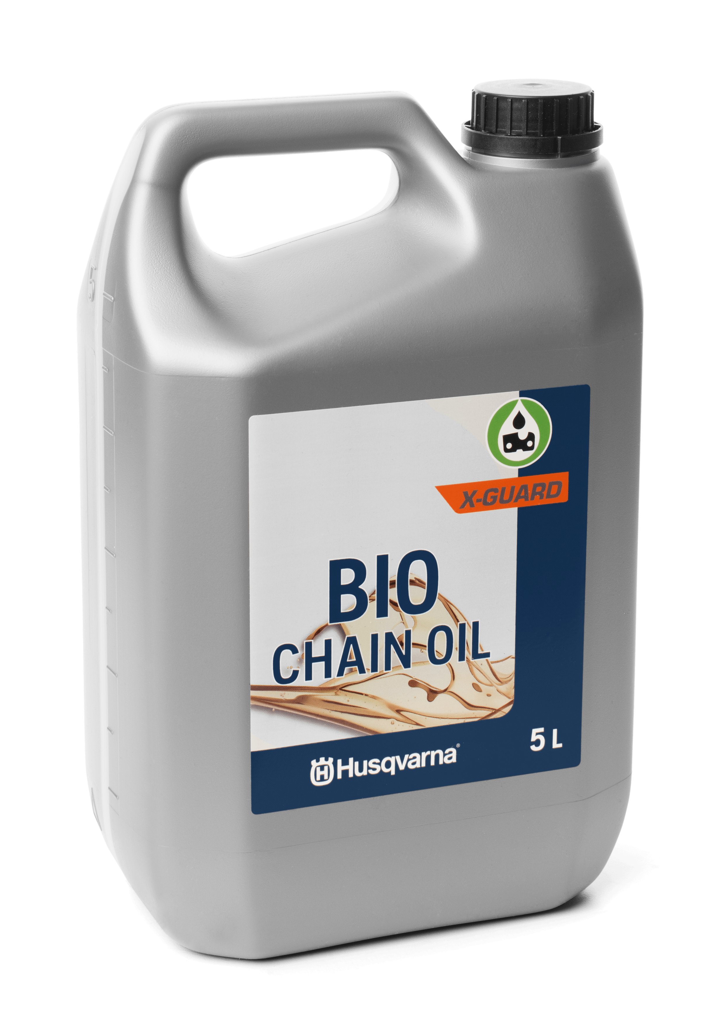 X-GUARD BIO Kettingolie van Husqvarna is een premium bio-kettingolie, gebaseerd op hernieuwbare grondstoffen. X-GUARD wordt aanbevolen als kettingolie voor het hele jaar door, met een eersteklas smering en kleverigheid. Door de kleverigheid kan het olieverbruik worden verminderd zonder enig risico op toenemende slijtage. Het geeft ook minimale hoeveelheden resten op de machine. X-GUARD heeft een extreem hoge viscositeitsindex, wat betekent dat de viscositeit minder varieert met de temperatuur en dat de kettingolie ook uitstekend werkt onder koude omstandigheden. X-GUARD Bio Chain olie vertoont zeer goede corrosiewerende eigenschappen die een zeer goede opslagstabiliteit geven na gebruik van producten. Het product is gemakkelijk biologisch afbreekbaar in bodem en water en niet giftig voor mens of milieu. De EU Ecolabel-certificering maakt het eenvoudig om te weten dat het product zowel milieuvriendelijk als van goede kwaliteit is.