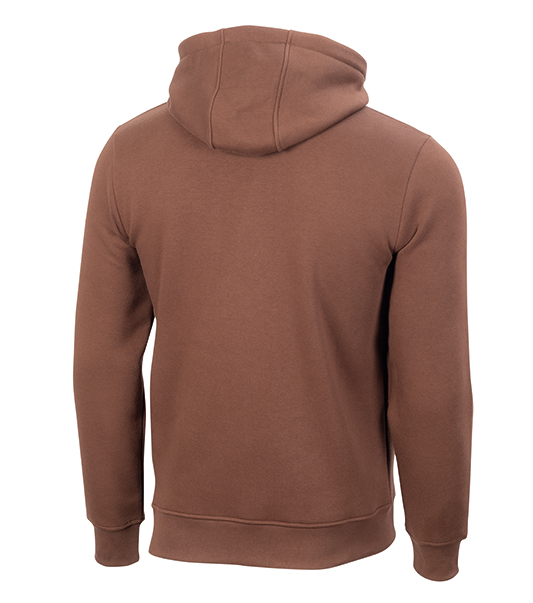 Comfortabele trui in bruin met John Deere-badge en kangoeroezak aan de voorkant. Materiaal: 80% katoen, 20% polyester. Kleur: bruin.