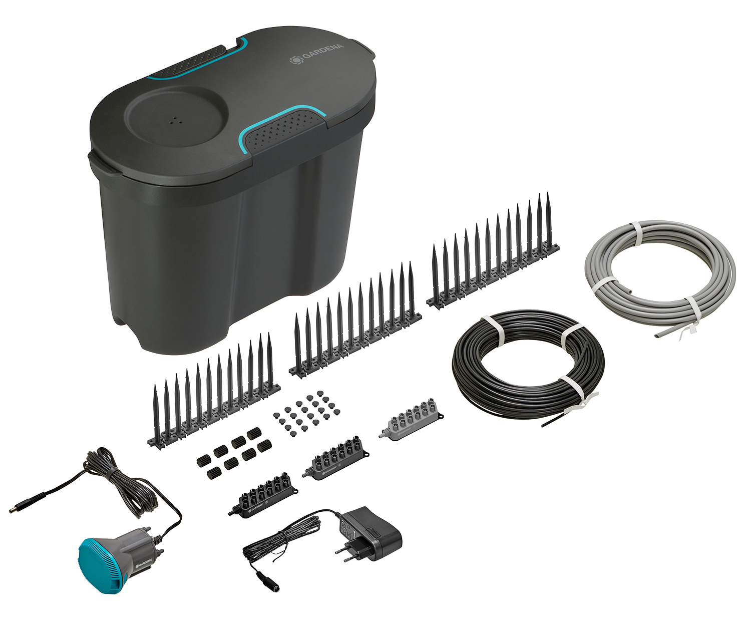 Of je nu op vakantie of op zakenreis bent, of gewoon een druk gezinsleven hebt, met de Vakantiebewateringsset van GARDENA hoef je je niet langer druk te maken over het bewateren van jouw kamerplanten. Ondanks je afwezigheid worden jouw planten voortdurend optimaal bewaterd. Voor dit bewateringssysteem is aansluiting op het stroomnet nodig, maar het hoeft niet op de kraan te worden aangesloten. Je kunt de Vakantiebewateringsset overal in huis, mits in de buurt van een stopcontact, plaatsen. Dankzij de druppelverdelers met drie verschillende waterafgiftesnelheden worden – afhankelijk van de waterbehoefte – tot 36 verschillende kamerplanten gedurende één minuut per dag gelijktijdig bewaterd, waarbij rekening wordt gehouden met de verschillende waterbehoeften. De Vakantiebewateringsset bevat alle noodzakelijke onderdelen en kan direct worden gebruikt. Het systeem is gemakkelijk te installeren en eenvoudig op te starten. Het bijbehorende waterreservoir bestaat voor 80% uit gerecycled materiaal en is daardoor de duurzame bewateringsoplossing voor je huis of serre. Het is zelfs mogelijk om de irrigatiepomp aan te sluiten voor optimaal watergebruik. Het waterreservoir kan ook als praktische opbergruimte voor de andere onderdelen van de set worden gebruikt. Dankzij het slanke design kan de irrigatieset onopvallend worden geplaatst en achter het meubilair worden verborgen. Door het slimme, moderne ontwerp van het systeem is de bewateringsset tijdloos en laat zich perfect in iedere woonruimte inpassen. Uiteraard is de set ook op het balkon te gebruiken. Het waterreservoir kan tot 10,5 liter water bevatten en zorgt voor een betrouwbare watertoevoer. Als je langer op reis bent, is dat ook geen probleem; het watervolume kan worden vergroot door extra waterreservoirs aan te sluiten. Plantverzorging wanneer je er niet bent. Onafhankelijke irrigatie voor kamerplanten.